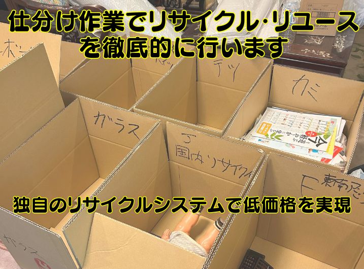お客様は、引き出しに入っていた虫眼鏡や老眼鏡、ホチキス、鍋やフライパン、食器、さらには子供の頃に遊んでいたぬいぐるみまでがリサイクル品として仕分けされる様子を見て、驚きを隠せなかったといいます “。この事実は、当社のリサイクルに対する取り組みが、一般的なリサイクル品目にとどまらない、より包括的かつ倫理的なアプローチであることを示しています。家財を単なるゴミとしてではなく、再び価値を持つものとして再生させるこのシステムは、お客様の「もったいない」という気持ちに応え、環境負荷を最小限に抑えるという現代的な価値観にも合致しています。